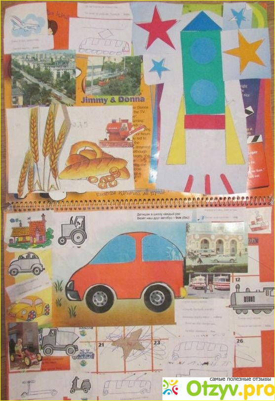В теме "Транспорт" есть ракета. Она вырезалась из цветной бумаги, ребенок сам рисовал макет, а потом вырезал. То есть получается, что мы использовали в нашей книжке не только картинки с журналов, но и творческие идеи ребенка, его рисунки и поделки. По книжке мы обучались так - я читала стихотворение, а ребенок дополнял меня.