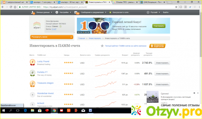 Большими суммами я не рисковала, причем разбивала свои инвестиции на несколько ПАММов, в общей сложности за все время моей работы на Альпари их было штук 20. Заходила в свой Личный кабинет пару-тройку раз в неделю, чтобы проверить, ч то там с моими вложениями. Прибыль я получала, небольшую, но все таки. Но и убытки случались регулярно. Что еще заметила, рано или поздно, каждый из моих ПАММ-счетов прогорал, даже самые казалось бы надежные.