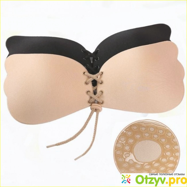С внутренне стороны бюстгальтер-невидимка Fly Bra ОЧЕНЬ липкий. Его потом даже отдирать больно. Кожа под ни очень сильно потеет. Но чем она более влажная, тем надежнее крепятся чашечки. Клеится очень просто: снимаете защитную пленку и наклеиваете на грудь, а специальной резиночкой, как бы сдвигаете и приподнимаете грудь. Очень не заметен на вашем теле.