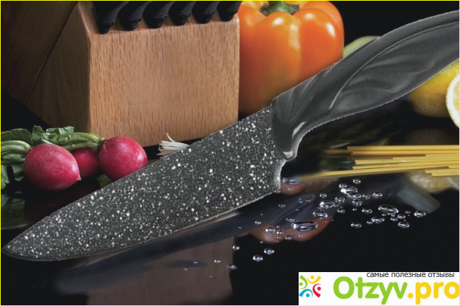 Покрытие ножей “Granitex” выполнено хорошо, защищает нож от механических повреждений и царапин (оно с частицами натурального камня), защищая их «скандинавский» дизайн, благодаря которому они отлично сочетаются с набором посуды от «Силы гранита».