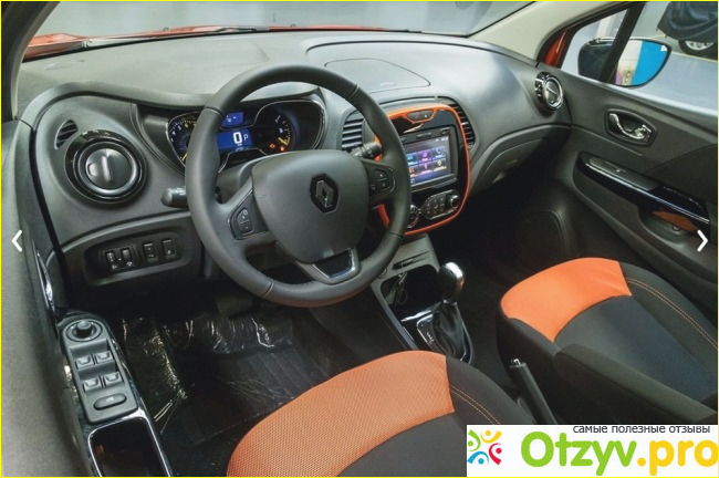 Рено Каптур имеет очень хорошее и качественное оборудование. Установлен очень удобный руль с гидравлическим управлением и мультимедийными функциями с которого можно управлять не только музыкальной системой а так же и климатом контролем, круиз контролем, ответить на звонок мобильного телефона или регулировать зеркала которые оборудованы электроприводом. Есть бортовой компьютер с достаточно большим экраном на котором так же есть аудио система, система спутниковой навигации, отображается передняя и задняя камера, так же есть передний и задний парктроник. Все двери оснащены электрическими стеклоподъемниками и установлен центральный замок а главное управление находится на водительской двери. Безопасность пассажиров обеспечивают передние и боковые подушки безопасности. Автомобиль так же имеет систему ABS, система экстренного торможения и систему стабилизации.