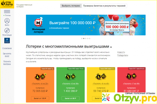 Также столото поможет определить выиграл ли билет или же нет. А также здесь можно посмотреть видео розыгрышей, увидеть истории и фото реальных победителей. Здесь большой выбор лотерей высокого уровня доверия. Таких как русское лото, жилищная лотерея и другие. Играть с помощью сайта легко и просто. Главное уметь вовремя остановиться, чтобы не остаться без штанов...