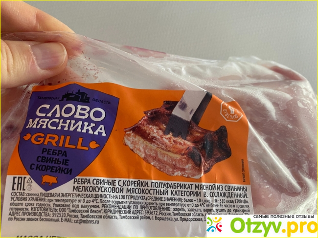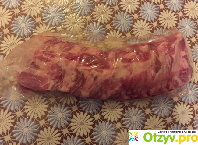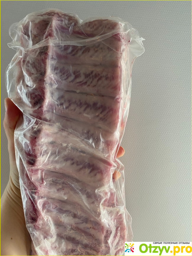 Часто покупаешь рёбрышки, а там одни кости, никакого мяса. В этом случае не так. Много мяса, продукция свежая, и запах, что немаловажно, молодой свинки, а не матёрого хряка. Ребра продаются в вакуумной упаковке, вес примерно 600г.