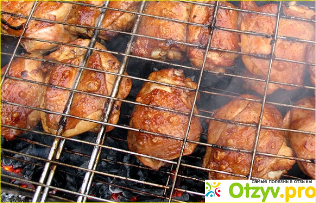 Мясо мы жарим на сетке - барбекю . Выкладываем туда наше мяско , пока открытый огонь " запечатываем " его , чтобы хорошо подрумянилось со всех сторон . Потом ждём чтобы огонь прогорел и жарим наш шашлычок до готовности .