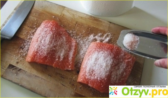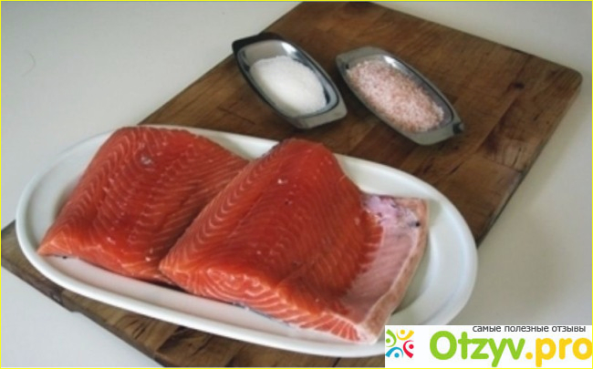 Время засолки также в немалой степени зависит от толщины кусков рыбы. Чем толще нарезанные куски, тем больше времени потребуется. чтобы они просолились. Но лучше солить рыбу крупными кусками, и подождать несколько лишних часов. Рыба в крупных кусках получается более сочная и имеет яркий насыщенный вкус.