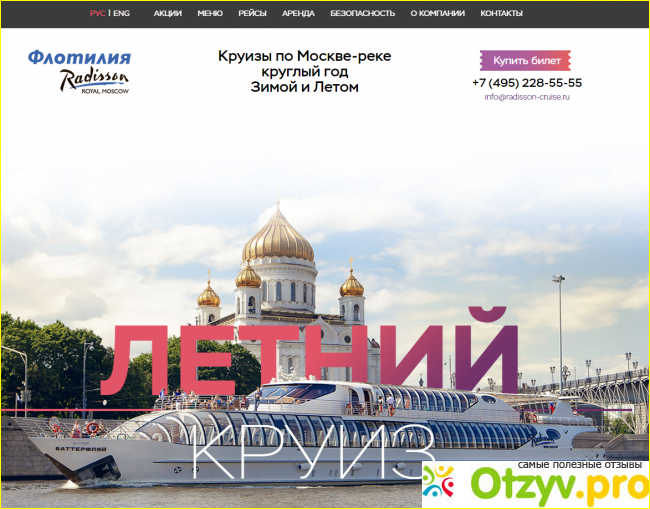 Я хочу рассказать, как мы с семьей катались на теплоходе Рэдиссон по Москве-реке. С него открываются великолепные виды на город. Один раз я плавала на теплоходе днем, а второй раз мы с мужем организовали себе здесь романтический ужин и любовались вечерними огнями Москвы.