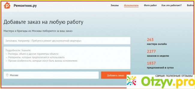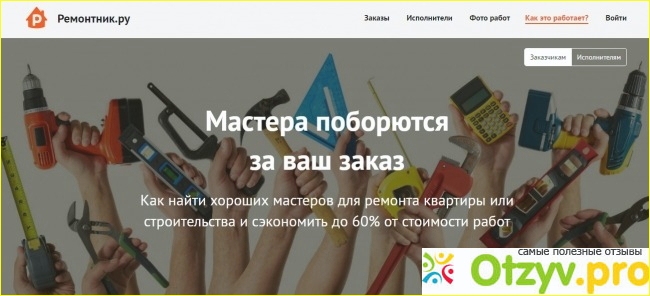 Тут делают практически любые строительные работы. Сайт хвалится тем, что у них тут несколько сот мастеров зарегистрировано, которые и будут биться за ваш заказ. Вам остается лишь выбрать тему вашей работы, указать как можно детальнее все характеристики работы (метраж, используемый материал, желаемые сроки, ценовой фактор, какие нужно иметь при себе инструменты рабочим, а какие есть у вас, например, банальная стремянка и т. д).
