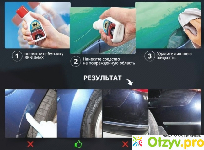 Эффект после использования средства я заметила сразу, чудодейственным образом, царапина действительно пропадает и машина превращается обратно в красивую, равномерно окрашенную машинку. С этим средством, можно не бояться коррозии, царапин. Поэтому, я рекомендую присмотреться к Ренамакс, поскольку считаю его необходимым средством каждому автомобилисту.