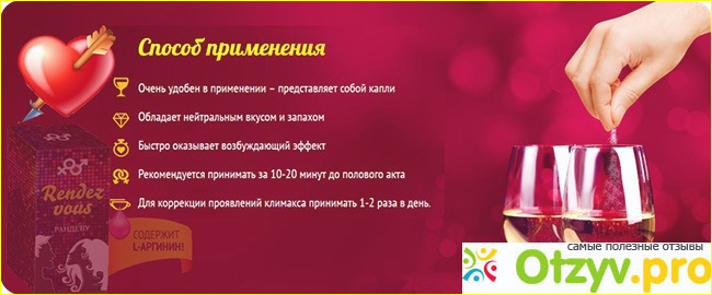 Выбор мой пал на возбуждающее Rendez vous - это специальный женский возбудитель, который способен подействовать быстро, но в то же самое время он не вредит здоровью.