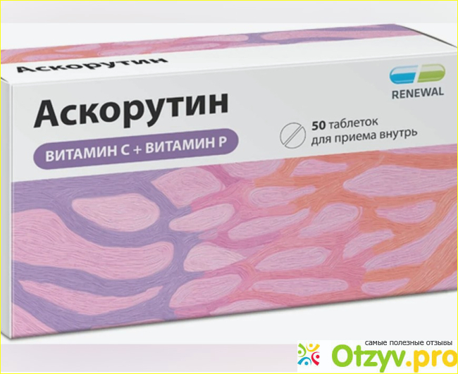 "Аскорутин" - витаминный препарат, производимый новосибирской компанией Renewal. В составе препарата содержатся два активных компонента: 50 миллиграмм аскорбиновой кислоты и 54.4 миллиграмма рутозида тригидрата.
