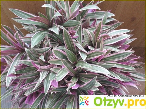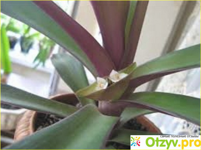 Отросток с парочкой листиков Рео у меня не только прижился, но и отлично разросся в большой пышный красивый куст , и периодически радует меня своим цветением. Хотя, откровенно говоря, привлекателен этот тропический цветок скорее своими листьями, имеющими оригинальную расцветку.