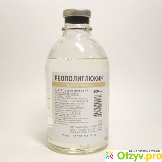 Реополиглюкин выпускается в виде прозрачного раствора, расфасованного в большие стеклянные флаконы.