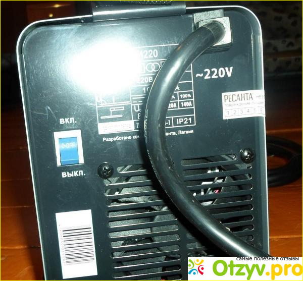На оборотной стороне аппарата имеется тумблер включения и как видите стоит большой кулер, который охлаждает инвертор.