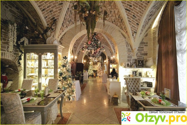 Честно говоря, раньше я здесь не бывала, но меня очень впечатлил интерьер ресторана: обстановка, как в древнем замке, шикарные своды с арками, объемные шторы, со вкусом подобранная мебель. Уже с порога, я заметила многообразие живых композиций из цветов, нежный аромат которых окутывал своей неповторимостью, светлые скатерти, аккуратно сервированные столы согласно правилам этикета, красивые картины в изысканных рамках, множество тонко подмеченных деталей интерьера, каждой из них автор уделил особое внимание. Во всем проявлен безупречный вкус и утонченность.