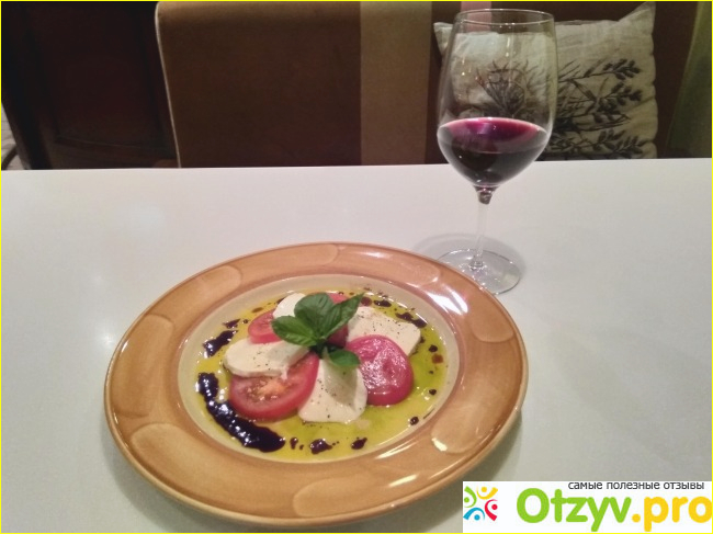 Еда вкуснейшая. Здесь можно отведать как закуски (сыры, ветчину, зелень, оливки и т. д.), так и горячие блюда. Мы очень любим пиццы, потому что в этом ресторане хорошее соотношение теста и начинки. Также предложены неплохие варианты пасты, и порции очень прилично.