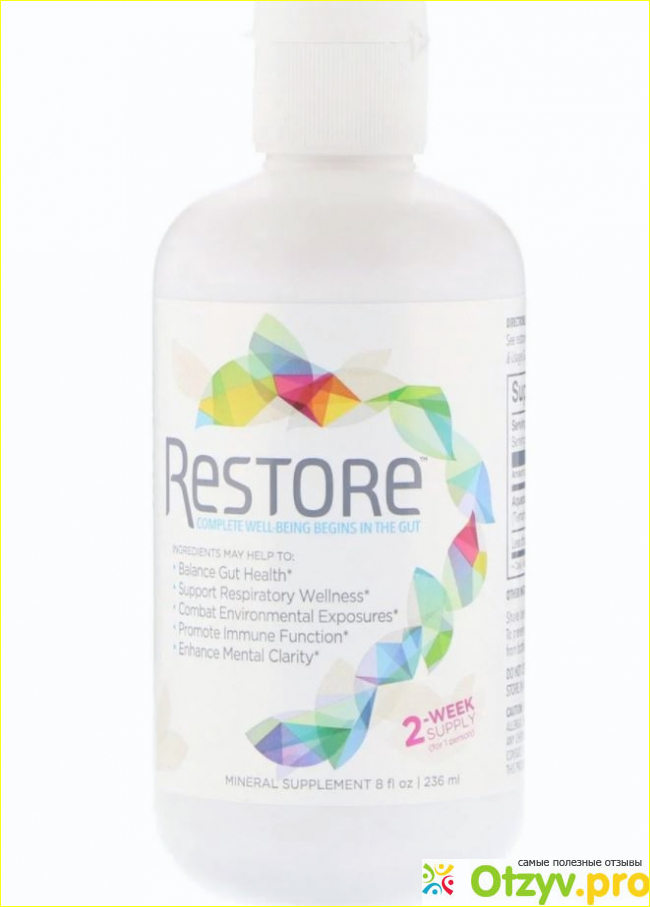 Restore - это минеральная добавка, полученная из почвы и подтвержденная научными исследованиями, которая укрепляет плотные соединения в стенке кишечника, помогает создать биологическую среду для роста и развития полезных кишечных бактерий, что способствует улучшению общего состояния здоровья. Добавка укрепляет слизистую оболочку кишечника, создавая благоприятный сдвиг в кишечных бактериях. Органические минералы в Restore борются с этими вредными токсинами окружающей среды, не позволяя им попадать в кровоток.