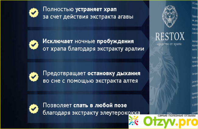 До сих пор самыми эффективными приемами против храпа считались народные методы и дыхательная гимнастика. Эту традицию нарушили капли Restox от храпа, отзывы о которых позволяют судить о практически 100%-ном действии. Кроме того, в числе явных преимуществ препарата: