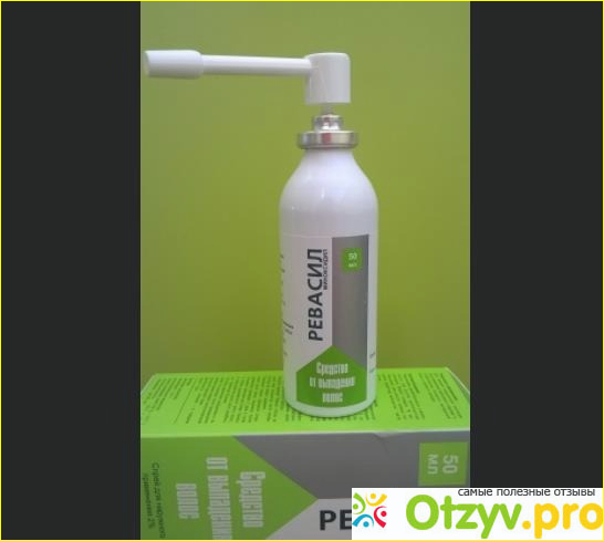 Ревасил продается в объеме, равном пятьдесят миллилитров. Средство находится в баллоне из алюминия. Также в коробочке прилагается и насадка-распылитель, вот только крепится она на флаконе не очень плотно, так что распылять спрей совсем не удобно. Насадка на нем болтается.