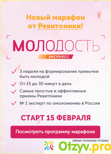 Хочу поделиться с вами мнением о данной программе. Ее главная фишка - тщательно продуманный научный подход к омоложению и, более того, оздоровлению. И в первую очередь я прочувствовала именно оздоравливающий эффект (а прошла всего лишь трехнедельный марафон).