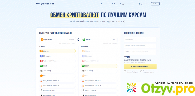 натолкнулся на обменный сервис Rexchanger.ru. Было несколько незначительных операций, потом уже дошло дело и до серьезных обменов. Могу констатировать следующее: сервис молодой, но заслуживает внимания, всем критериям полностью соответствует. Базовые пункты на счет безопасности, оперативности, качества курса и резервов присутствуют, так что не вижу смысла в дальнейшем поиске. Буду менять тут!