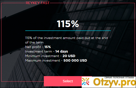 ReyKey Fast. От 20 до 500 000 долларов на 14 дней. Доходность 15% за круг или 30% в месяц. Депозит и проценты в конце срока.