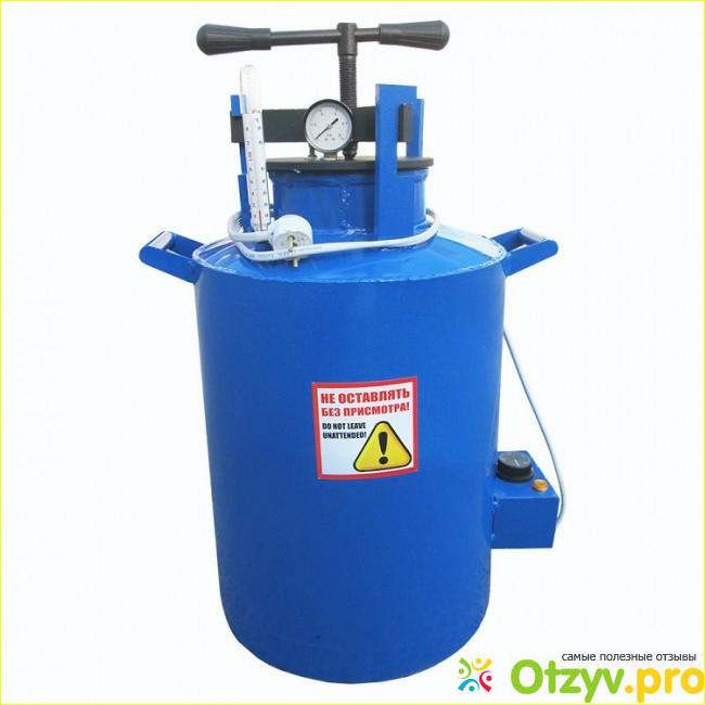 Поскольку в данном случае, при применении автоклава, производится работа с высокими температурами и повышенным давлением, желательно чтобы на крышке прибора присутствовали приспособления, позволяющие контролировать процесс прохождения стерилизации, то есть должен присутствовать термометр и манометр.