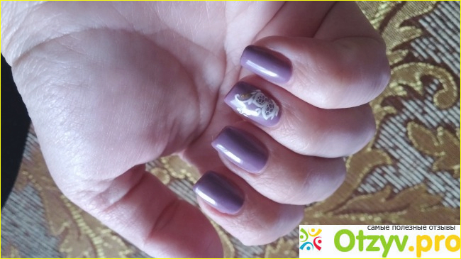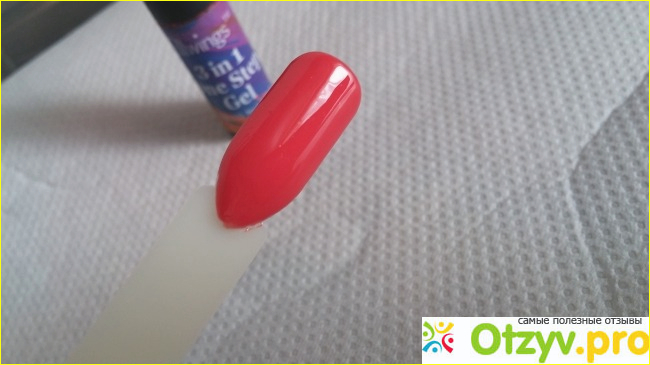 Дешевенький неустойчивый тюбик содержит в себе настоящее сокровище. Это потрясающий гель-лак, который можно наносить в один(!) слой! Густой лак легко наносится, сохнет традиционные 2 минуты в УФ-лампе на 36 Вт. Технология one sstep позволяет использовать его без базы и топа. Я не люблю наносить цветное покрытие на свой ноготь, поэтому работаю по обычной схеме. Носка на пять. И всего за 70 рубликов, объем 6 мл.