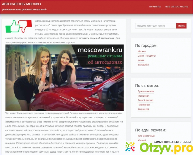 На сайте есть очень много адресов автосалонов и автотехцентров расположенных не только в москве но и по всей России, а также отзывы и реальные мнения людей.