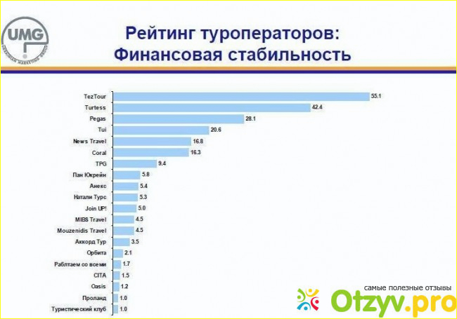 Компания «TUI» является одним из лидеров на рынке и работает с 1995 года. Основными её направлениями являются страны Европы, например, Турция, Кипр, Черногория, Болгария, Испания. Работает на территории России давно. Ценовая политика компании очень гибкая, поэтому можно найти любые туры по вполне приемлемым ценам. У неё есть свои отели более чем в 20 странах.