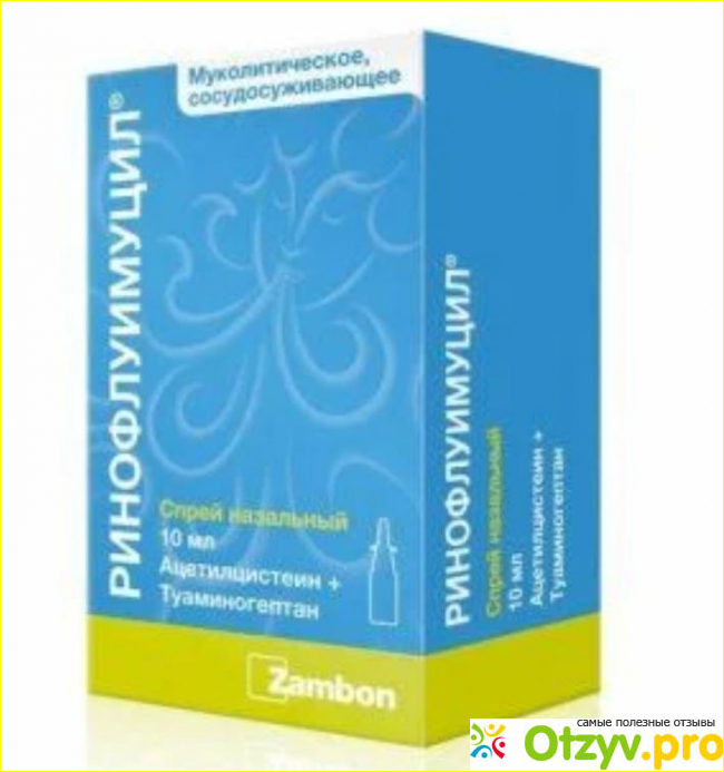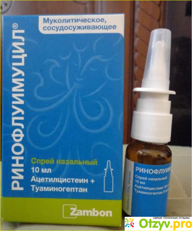 Ринофлуимуцил - это лекарство, отпускаемое без рецепта, которое содержит активные ингредиенты N-ацетилцистеин и сульфат туаминогептана. N-ацетилцистеин (НАЦ) разжижает и растворяет густые выделения (мокроту), которые застаиваются в дыхательных путях, и способствует отхаркиванию. Туаминогептансульфат относится к классу препаратов , называемых сосудосуживающими, которые воздействуют на кровеносные сосуды внутри носа, облегчая заложенность носа (эффективны при заложенности носа).