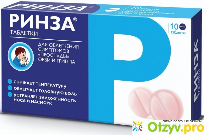 Ринза- Препарат для устранения симптомов острых респираторных инфекций и простудных заболеваний. Средства из этой группы предназначены специально для уменьшения неприятных симптомов простуды, для облегчения самочувствия больного, для уменьшения течения болезни. Он, конечно, не может стать полноценной заменой антибиотикам, если, например, ваша простуда осложнена респираторными патологиями (бронхит, пневмония), но прекрасно снимает высокую температуру, борется с болью, насморком, чиханием, кашлем, аллергическими проявлениями и другими неприятными симптомами.