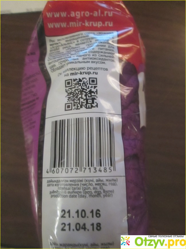Вид пачки с обратной стороны, выращен он в России! У нас не самая рисовая страна, но около Краснодара и озера Ханко что-то растет. С гордостью сообщили что нет ГМО в нем.