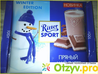 Вкусы в этот раз не только необычные, но и очень яркие, запоминающиеся. Молочный шоколад Ritter Sport сам по себе не отличается по вкусовым ощущениям от не лимитированных вариантов. По форме и размеру ограниченная новогодняя серия риттер спорт также не отлична от традиционных вариантов. А вот обложка имеет особенность. В зарубежных странах, вроде как, она другая, а вот в России на обложках шоколадок есть очень милый снеговик, помимо указания того, с чем, собственно, начинка той или иной шоколадной плитки. И стоит пометка о том, что это новинка, а также Winter Edition (новогодняя версия).