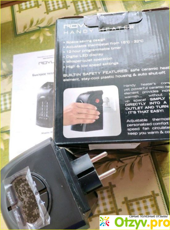 портативный обогреватель быстрое тепло Робус подключается на прямую к розетке и очень быстро нагревает воздух в помещении. Он избавился от всех недостатков своих родственников обогревателей, при этом он сохраняет мощность нагрева. Включается очень таки просто, вставляем в розетку и нажимаем кнопочку. Он легко нагревает комнату в 18м2. Хорош так же он тем , что не имеет проводов, к которых могут запутаться ваши детки. Имеет безопасный керамический нагревательный элемент, ненагревающийся корпус обогревателя, обеспечивает безопасность вашим деткам от ожогов. Этот обогреватель имеет автоматическое отключение, которое предоставляет вам комфорт, то-есть, если он нагрел помещение до определенной температуры сам может отключится.