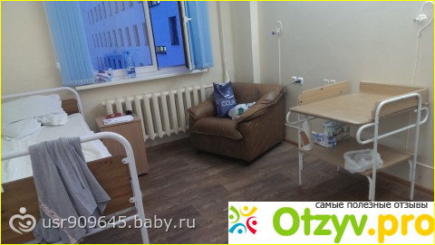 В родовой есть все необходимое, но при этом ничего изысканного нет. В палате только кровать, разная медицинская аппаратура, столик для ребенка, фитбол и стол врача.