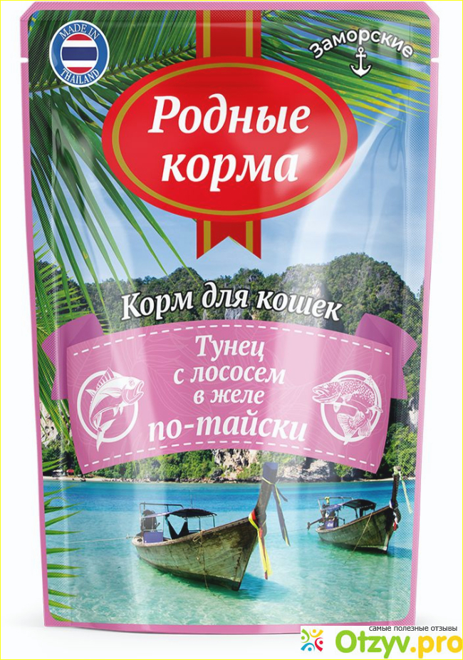 Кошкам пришёлся по вкусу. РОДНЫЕ КОРМА заморские паучи для кошек тунец с лососем в желе по-тайски