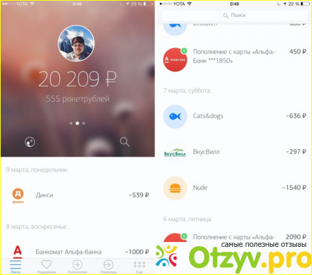 К минусам могу отнести только то что здесь при переводе на карту Рокетбанка к примеру денежных средств со Сбербанка, то до 5000 снимают комиссию. Чтобы было понятно с 1000 рублей, я потеряла 50 рублей.