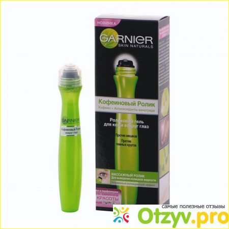 Роликовый гель от Гарньер имеет в своем составе виноградные антиоксиданты. Они-то и призваны бороться с различными следами усталости, ненормированной жизни, которые проступают на лице и затрагивают веки.