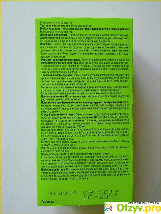 Практически всегда беру упаковочку ромашки в дальнюю поездку, она отлично успокаивает и даёт хорошее настроение.