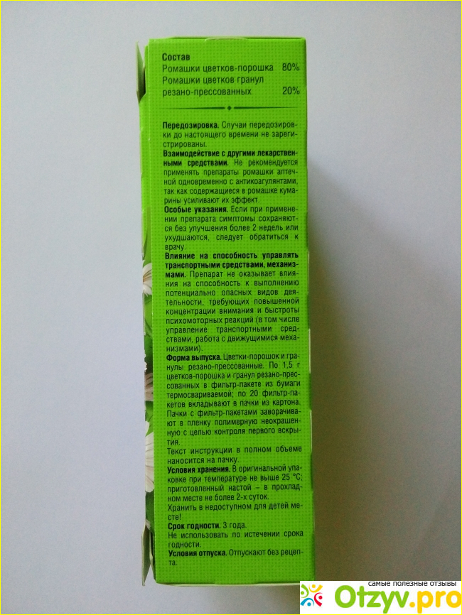 Цветки ромашки продаются в каждой аптеке. Я предпочитаю покупать их в пакетиках, как чай. Это намного удобней, чем заваривать ромашку россыпью. Последнее время беру ромашку от "ФармаЦвет". Мне понравился этот производитель, так как у него на упаковке есть вся необходимая информация. А так же качество самой ромашки лучше, чем у других. На мой вкус.