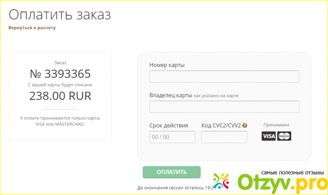 Оплатить заказ можно картой, введя номер карты, имя владельца и код с обратной стороны карты.