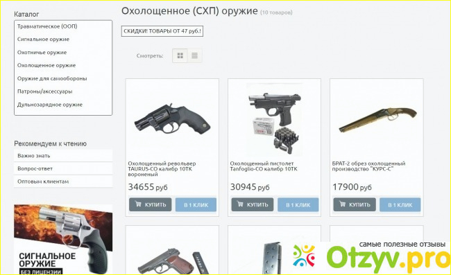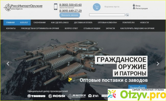 Этот вкус не спутаешь ни с чем на свете. Когда подрос осталась любовь к оружию. И теперь иногда ради удовольствия ездим с группой ребят на охоту. Никакого браконьерства, всё по закону :) . Только когда открывается тот или иной сезон охоты. Но ещё с юности люблю все виды оружия, эта любовь наверно не только от деда, но от любимого журнала юности "Техника молодёжи" :)). И если ранее ездить приходилось за оружием в районный центр в основном, так как только там был хороший выбор, то теперь можно это сделать спокойно. сидя дома и не гонять машину за двести семьдесят километров до районного центра. Данный сайт "РоссИмпортОружие" позволяет совершить любые покупки из разрешённых видов оружия доступных к продажам на территории нашей страны. На данном сайте предоставляется большой выбор травматического, сигнального, охолощенного (то есть настоящее оружие, но приведённое в непригодное состояние и продаваемое для коллекционеров и зачастую), охотничье оружие и даже иногда продают и антикварное оружие. Широчайший ассортимент даёт возможность спокойны подбирать любой вид этой специфичной продукции, и позволит удовлетворить все ваши требования к ней. Травматическое оружие там представлено как с барабанными так и с пистолетными обоймами. Различные модели для свето-шумового сигнала. Мы например на нашу бригаду охотников на всякий случай парочку взяли там у них, правда ни разу по назначению не использовали, а только так иногда под новый год, вместо фейерверка :). Из охолощенного оружие так же можно прикупить пистолеты СХП, которые подвергались конструктивному изменению и теперь совсем не стреляют боевым патроном. Вместо этого они, при маленькой цене, делают имитацию настоящего выстрела со световым и шумовым эффектом, и теперь это просто реалистичный макет. Дульнозарядны ружья так же можно прикупить. Оружие с доставкой, антикварное, такие модели статут хорошими экспонатами в ваших личных коллекциях. Так же в ассортименте представлены большие выборы патронов и аксессуары различных типов. Вы можете подбирать всё нужное вам на охоту, самооборону, или что бы тренироваться в меткой стрельбе, а так же даже для исторических реконструкций, если используете охолощенные модели. Этот магазин сотрудничает со множеством производителей вооружений, экспортируемых по всем странам мира. Так что в их ассортименте вы найдетё все нужные виды снаряжения, большой выбор пистолетов и ружей по довольно выгодным ценам. Приобретается это всё довольно просто. Нужно по выбирать нужный себе товар и закинуть его в «корзину». После этого, как «корзина» заполнена, хорошо бы ещё разок проверить всё её содержимое и, если перечисленные товары соответствует тому что вы выбрали, подтверждайте заказ. Потом вам предложат прочитать договор и нужно заполнить свои контактные данные. Указывав контактные данные, учитывайте, что по ним будет вам выставлен счёт на оплату и далее, произведётся отправка. Свой адрес желательно написать как можно более подробно: указав индекс почтового отделения, область (край, республику, округ и т. п.). После как поступит и обработают заказ вам выставят счёт на оплату. Если будет необходимость что либо уточнить менеджер с сайта свяжется с вами по e-mail или по телефону, который обязательно указывается в заказе. Приятных вам заказов и удачной охоты!