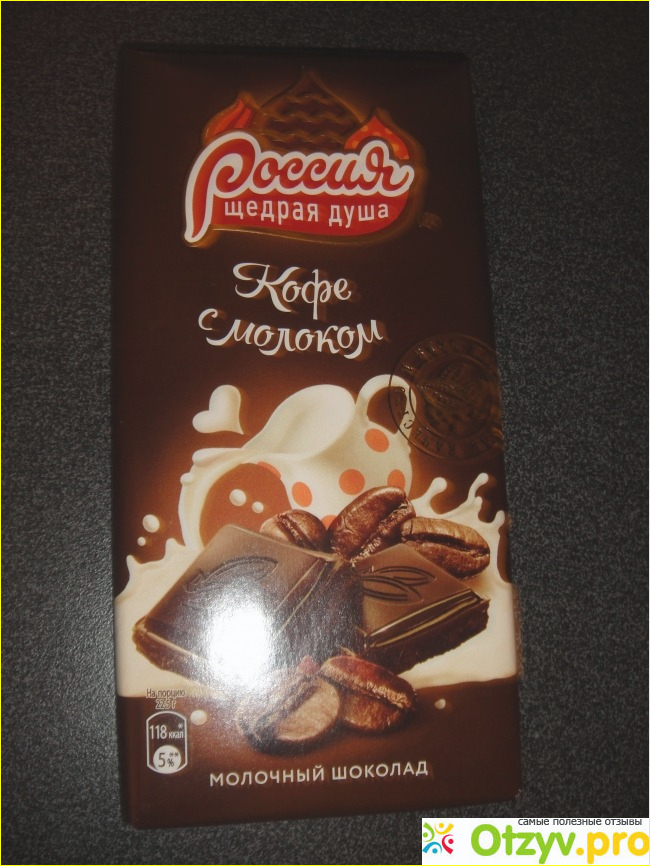В магазине по соседству с нашим домом периодически проходят различные акции, в том числе можно купить с приличной скидкой шоколадки. Ну и как-то зайдя в этот магазин, купила очередные две шоколадки, одна из них и была Молочный шоколад Кофе с молоком от производителя Россия Щедрая душа.