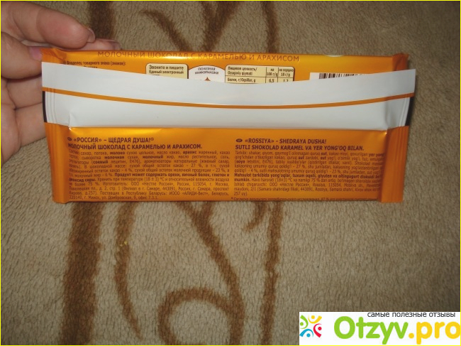 Шоколад Россия щедрая душа имеет настоящий богатый шоколадный вкус, прекрасный оттенок дополнений, тонкий намёк на присутствие аромата рома или коньяка.