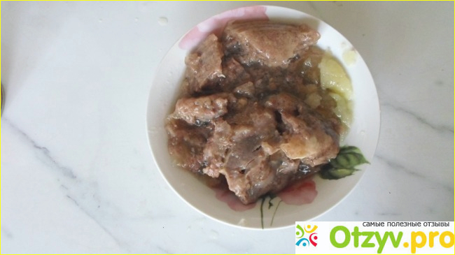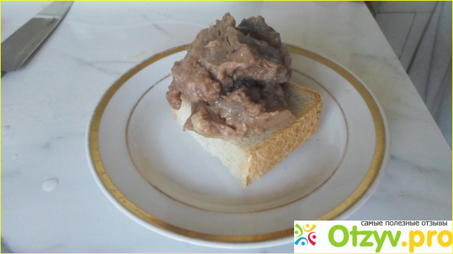 Количество жира совсем не много и он не походит на говяжий жир - как будто свиного вложили. Я с огромным удовольствием положила шматок мяса на небольшой кусочек хлеба и такой бутерброд мне не очень пришёлся по вкусу. Да кусковая и уложено в банке много, но мне чего то не хватило именно во вкусе.