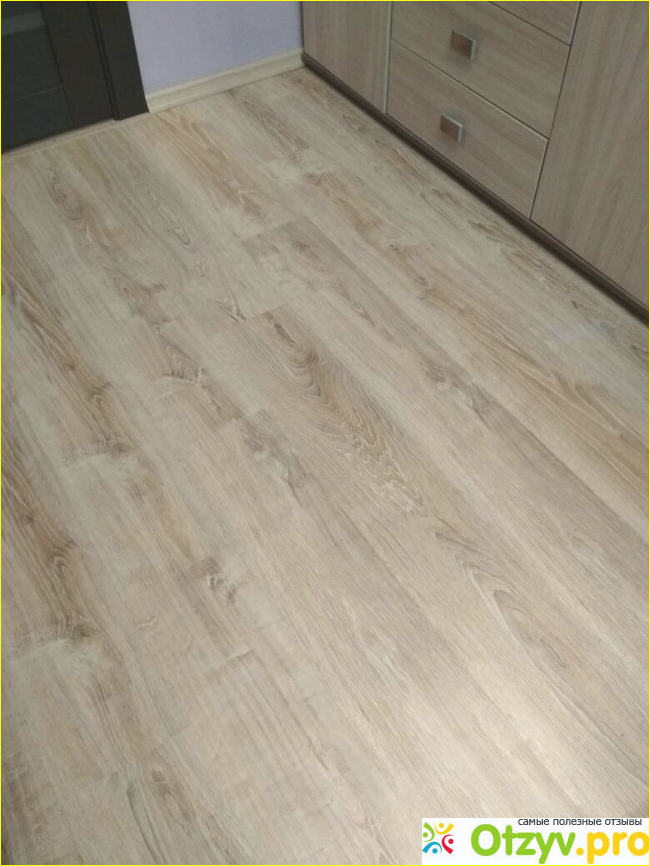 Прочность данной модели относится к 32 классу. В каждой пачке прилагались инструкции, с пошаговыми действиями. Очень удобно. Собственно так мы и сделали, на кухню у нас шел 1 вечер и еще 1 потратили на укладку ламината в спальне и коридоре. И это надо учесть, что ранее мы вообще не имели опыта укладки ламината, За год эксплуатации могу подвести небольшие итоги: во-первых, скрипа нет, в уходе прост, мою ламинат влажной тряпкой, могу иногда добавить какое-нибудь моющее средство для пола. При всех достоинствах, мы всё нашли один недостаток - пол стирается при механическом регулярном воздействии, например от кресла с колёсиками. Что касается выбора коллекций и декоров, то у СВИСС КРОНО он сейчас огромен, реально огромен, мы во всех комнатах постелили декор «Дуб ретушированный», коллекции SUPERIOR!!! Внешним видом полотна мы очень довольны)))
