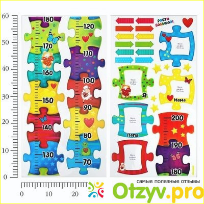 Он выполнен из обычного картона, на нём рисунки из детского мультфильма. Он очень придётся по нраву Вашему малышу. Но на моё мнение, такой ростомер можно вполне сделать и своими руками, а к работе подключить своего ребёночка, для того, чтобы Вы вместе с ним определились, какой будет ростомер в Вашем доме. Удачи Вам в делах. И будьте здоровы вы и ваша семья будет счастлива . ведь здоровье главнее , чем деньги и оно нужно каждому для полного счастья .)))