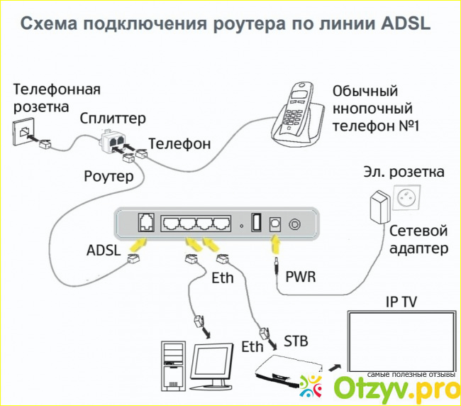 Схемы подключения роутера по телефонной линии (протокол ADSL) приведена на рисунке 2.