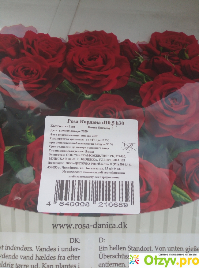 Роза упакована в красивый специализированный пакет. С полной информацией о производителе.
