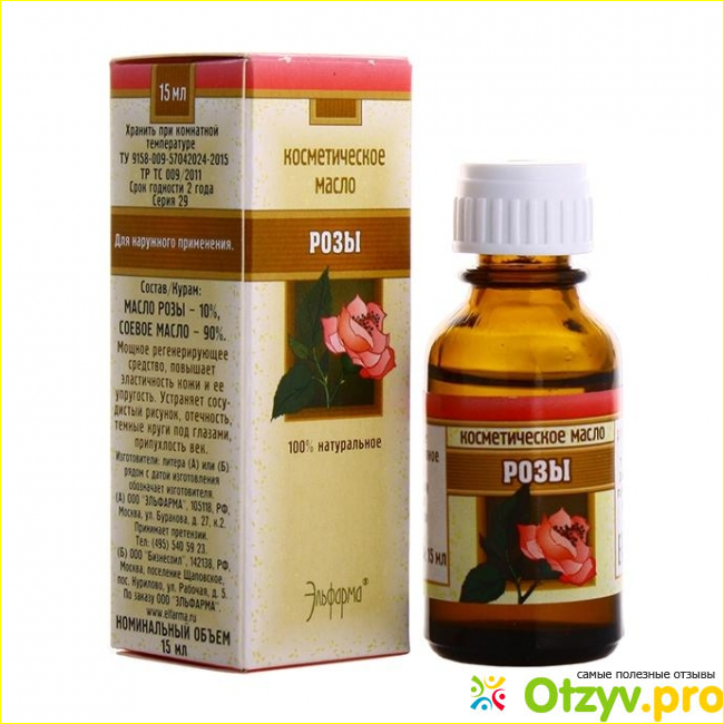 Данное масло, которое мы сейчас рассматриваем, добывают из дамасской и столичной розы (используют только их свежие лепестки). Для того, чтобы масло получило все необходимые полезные свойства из розы, недавно распустившие бутоны принято собирать на рассвете и тут же отправлять на переработку. Если возникнет промедления хотя бы на три часа, то есть вероятность потерять до тридцати процентов драгоценного масла. А ведь, чтобы выделить всего один литр этой субстанции, срезают и прогоняют более, чем полтонны лепестков роз! С такими расчетами, на одну каплю масла идет около тридцати бутонов! В домашних условиях изготовить эфирное масло из розы практически нереально, поэтому его можно только покупать в аптеке. В среднем, одна бутылочка (пятнадцать миллилитров) десятипроцентного масла розы, разведенного в масле сои стоит дести двадцать-двести пятьдесят рублей. Лично я предпочитаю брать эфирное мало розы в аптеке. Могу посоветовать косметическое масло розы от Эльфарма.